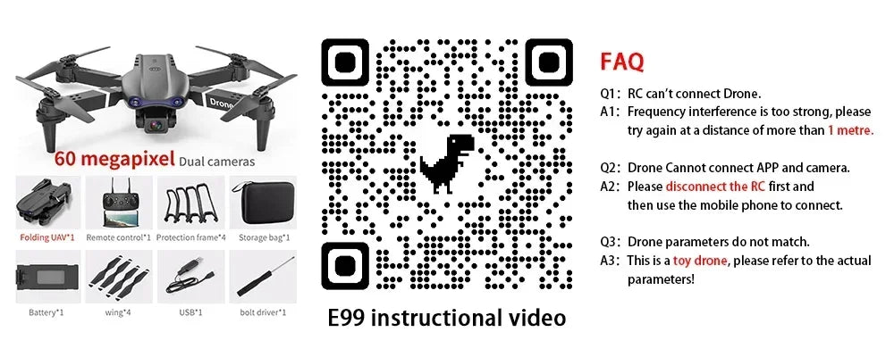 1. Remote control and drone cannot be paired: If the drone cannot be connected to the remote control, it may be due to excessive frequency. Please reconnect the remote control and drone at least 1 meter apart